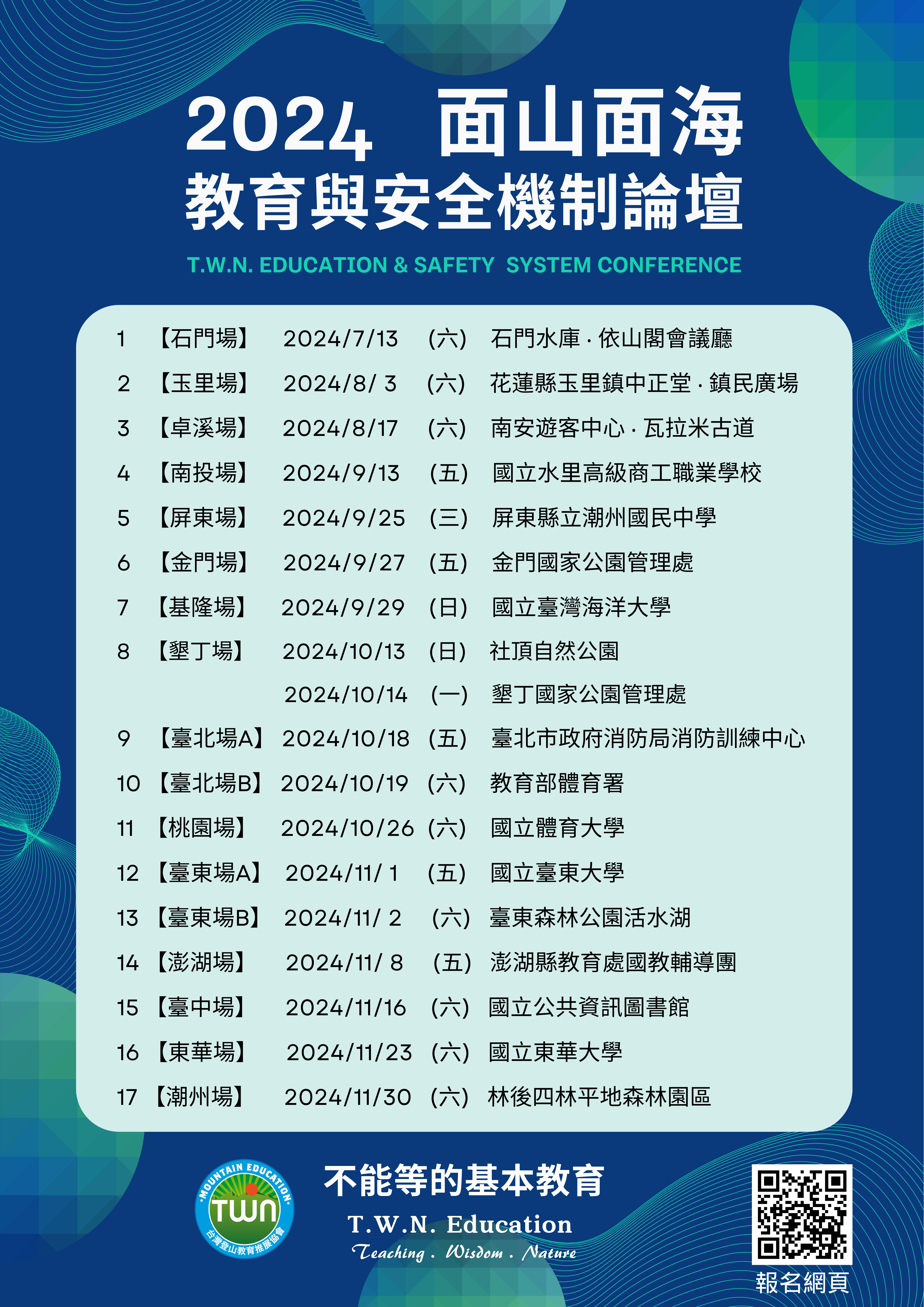 檢附旨揭論壇總表1份,各場次議程表及報名詳協會網站: http://twnmouedu.wix.com/-twnmountain,若有相關問題,請寄信至協會電子信箱:twnmouedu@gmail.com。