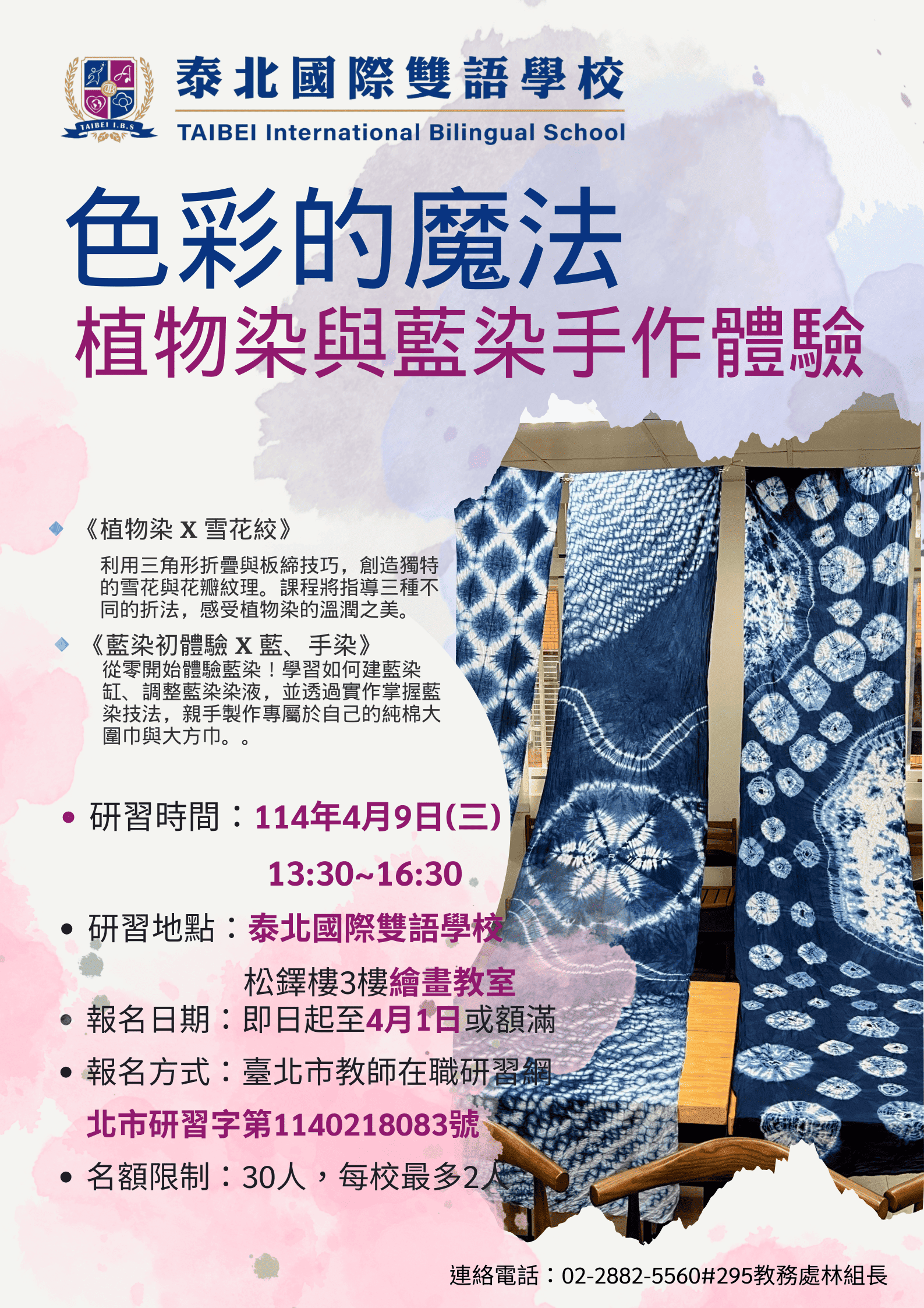 1、研習名稱:染布工藝在生活美學的應用-色彩的魔法:植物染與藍染手作體驗。