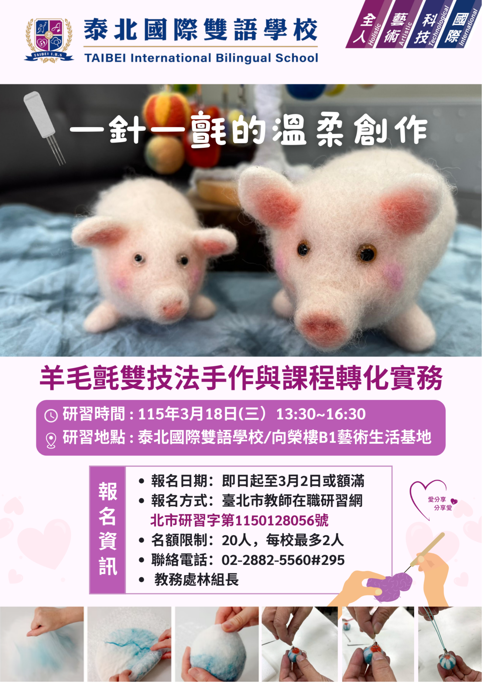 (三)報名網址:請貴校師長至臺北市教師在職研習網 (https://insc.tp.edu.tw/)進行報名,核准文號為北市研習字第1150128056號。全程參與研習者核發3小時研 習時數。