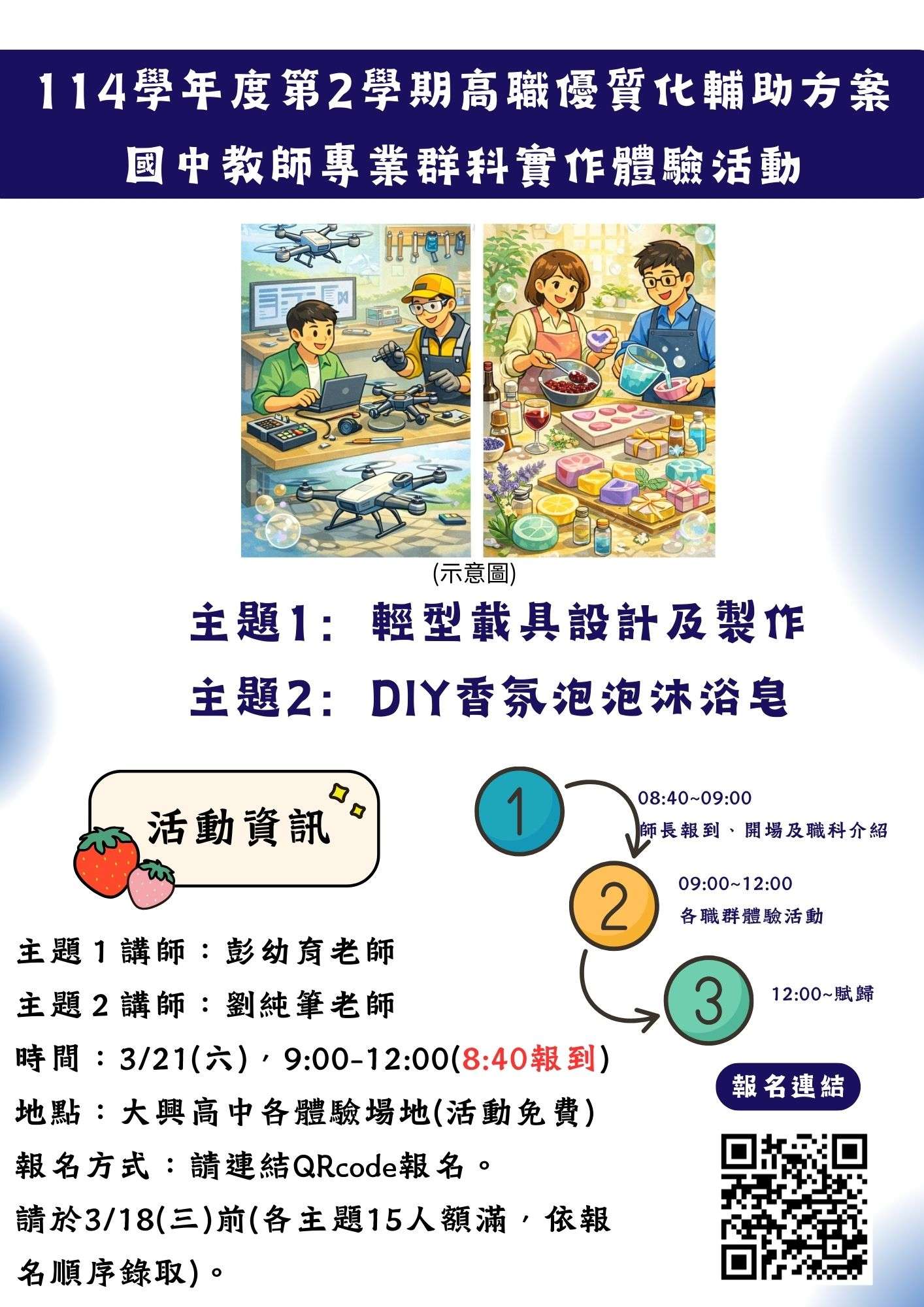 (二) 實作體驗:115年3月21日(六)09:00~12:00,共3小 時。